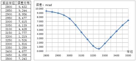 Preliminary analysis, the use of curvature 2800mm-3500mm, step for 50mm analysis, the error curve is as follows: