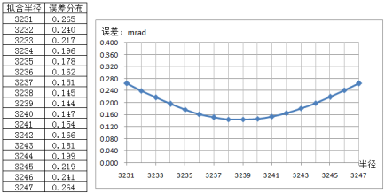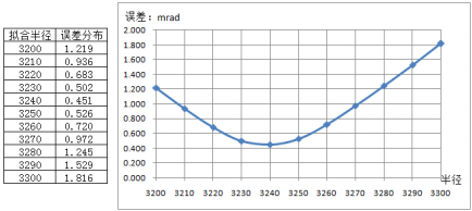 With the best value of 3239mm curvature of the lens error contrast, the error is very small, the use of 2mrad scale has been unable to see the trend.