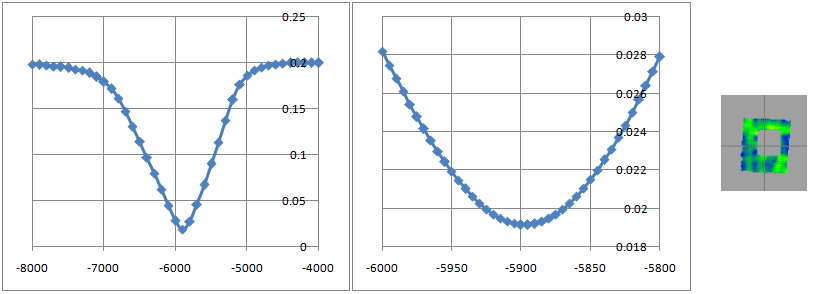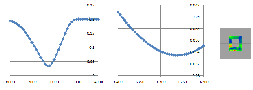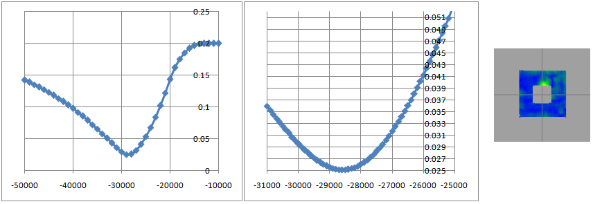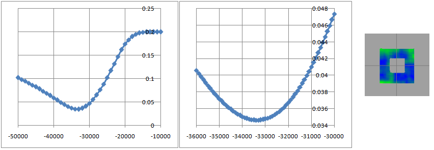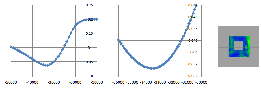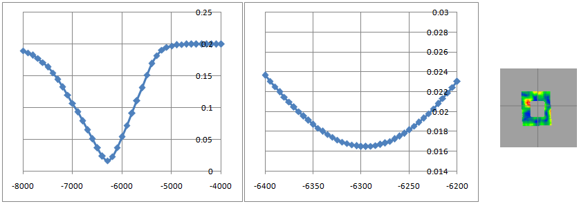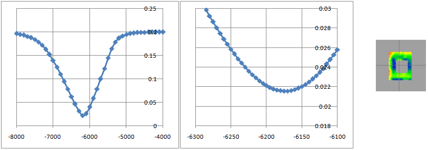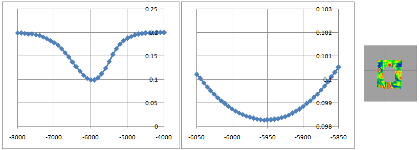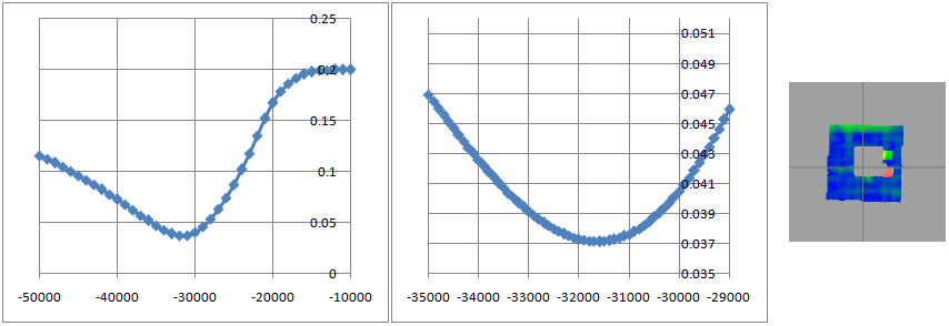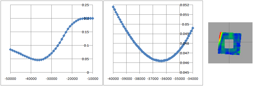 The left side of the image is the error distribution of the whole lens fitting. The best curvature is near 350m;