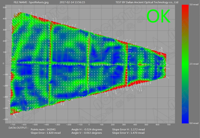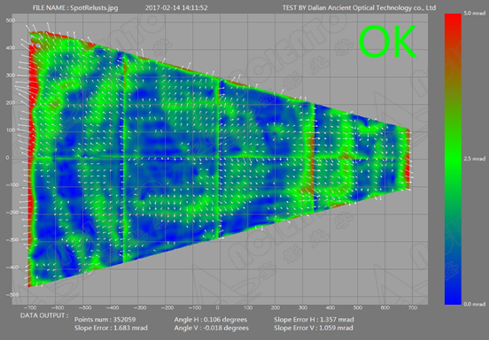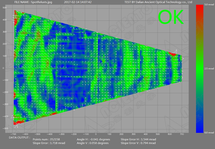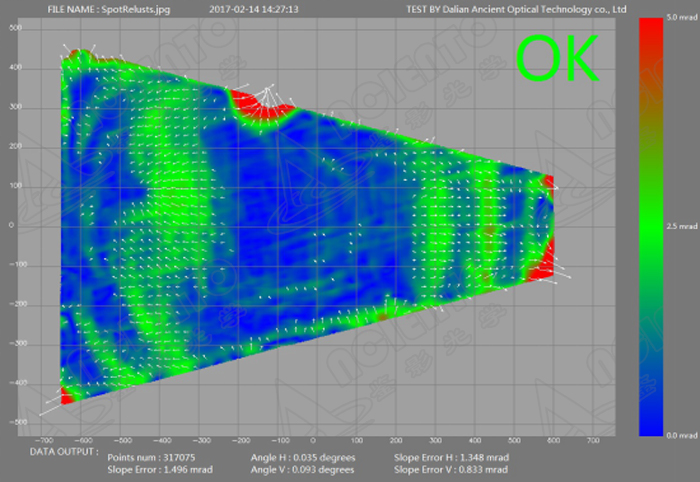 通过测试,⑤号样片误差大,其余样片误差均在2mrad以内,可满足使用要求。